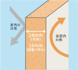 また、極厚の保温材でバスルームを囲うため、外気を遮断しつつ内部の熱を逃さずキープでき、