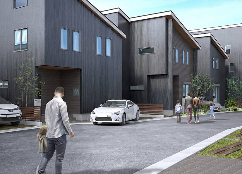 シンプルかつコンパクトにまとまる新しい街区に、私たちはシャープで都会的な“ミニマル × モダン”の家づくり、街づくりを展開していきます。
