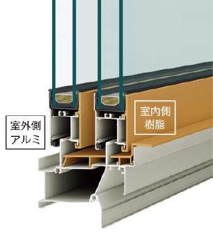 窓は、アルミと樹脂それぞれのメリットを発揮するハイブリッド窓を採用。