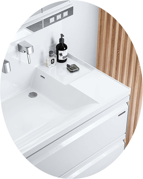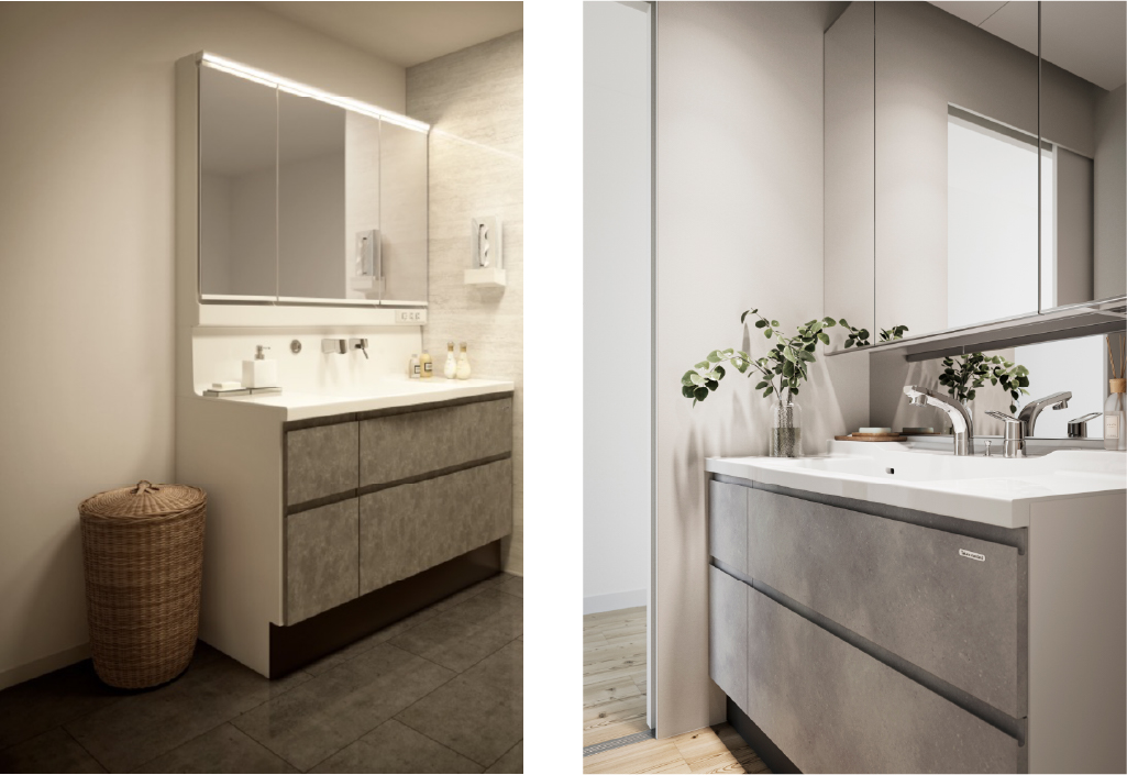 洗面化粧台はワイドで使いやすい横幅1200サイズを標準仕様でご用意しています。