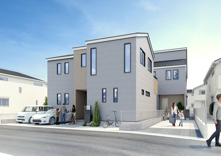 やさしい木目をアクセントに組み合わせた、新規分譲街区ならではのモダンな都市型デザインに仕上げ、見た目にも意匠性を感じる4棟をつくっていきます。