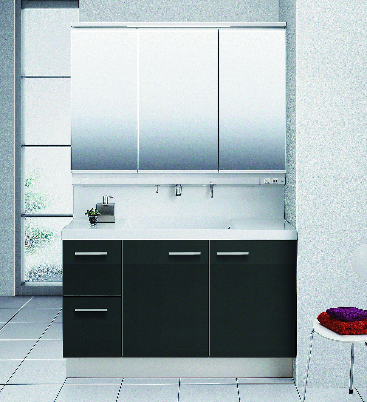 洗面化粧台はワイドで使いやすい横幅1200サイズを標準仕様でご用意しています。