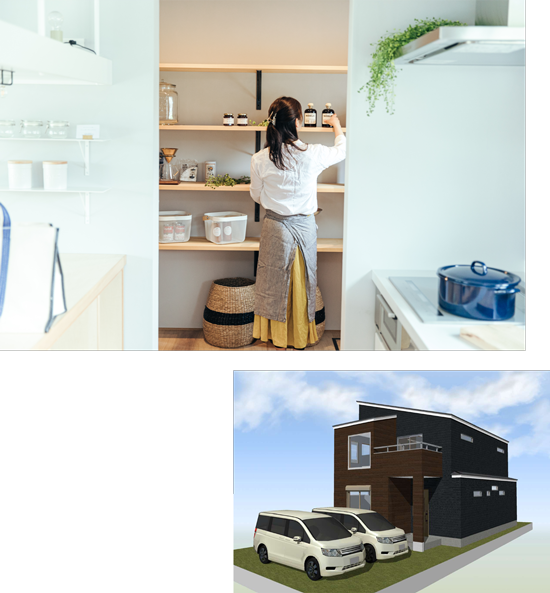 また、年間約30棟近くの注文住宅を手掛ける私たちだからこそできる、お客様のリアルなニーズをダイレクトに反映した、4つの機能的な分譲住宅をご提供していきます。