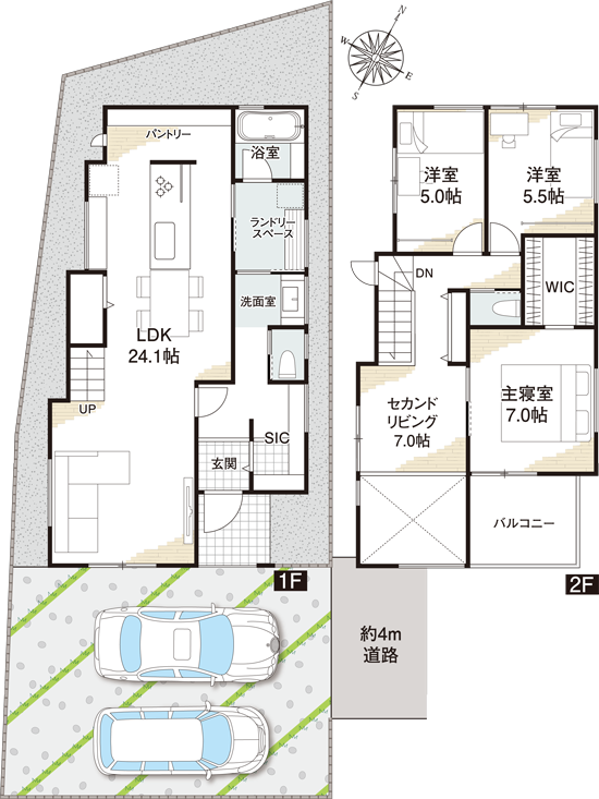 1F:57.55㎡ 2F:47.55㎡新築4,130