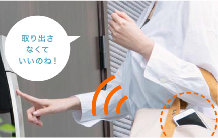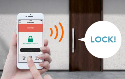 タグキーはもちろん、専用アプリをダウンロードでスマホが玄関キー代わりに。Bluetooth通信により、ボタンを押すだけで解施錠できます。