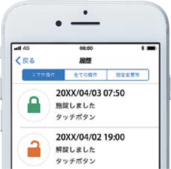 自分のスマートフォンを 使用して施解錠した場合、 アプリ内に操作履歴が残 ります。