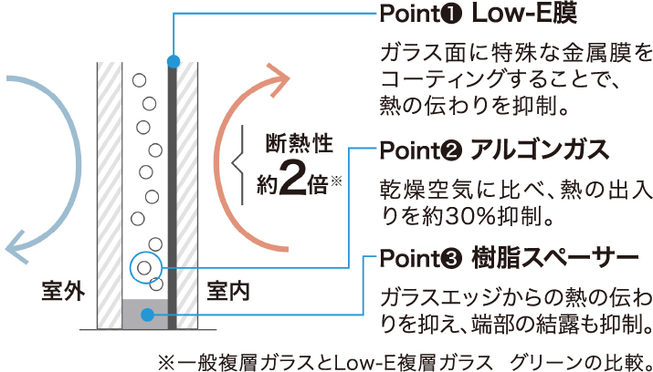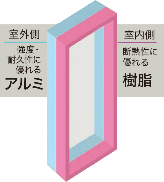 また室内側には断熱性に優れた樹脂を採用し、熱の出入りを抑制します。