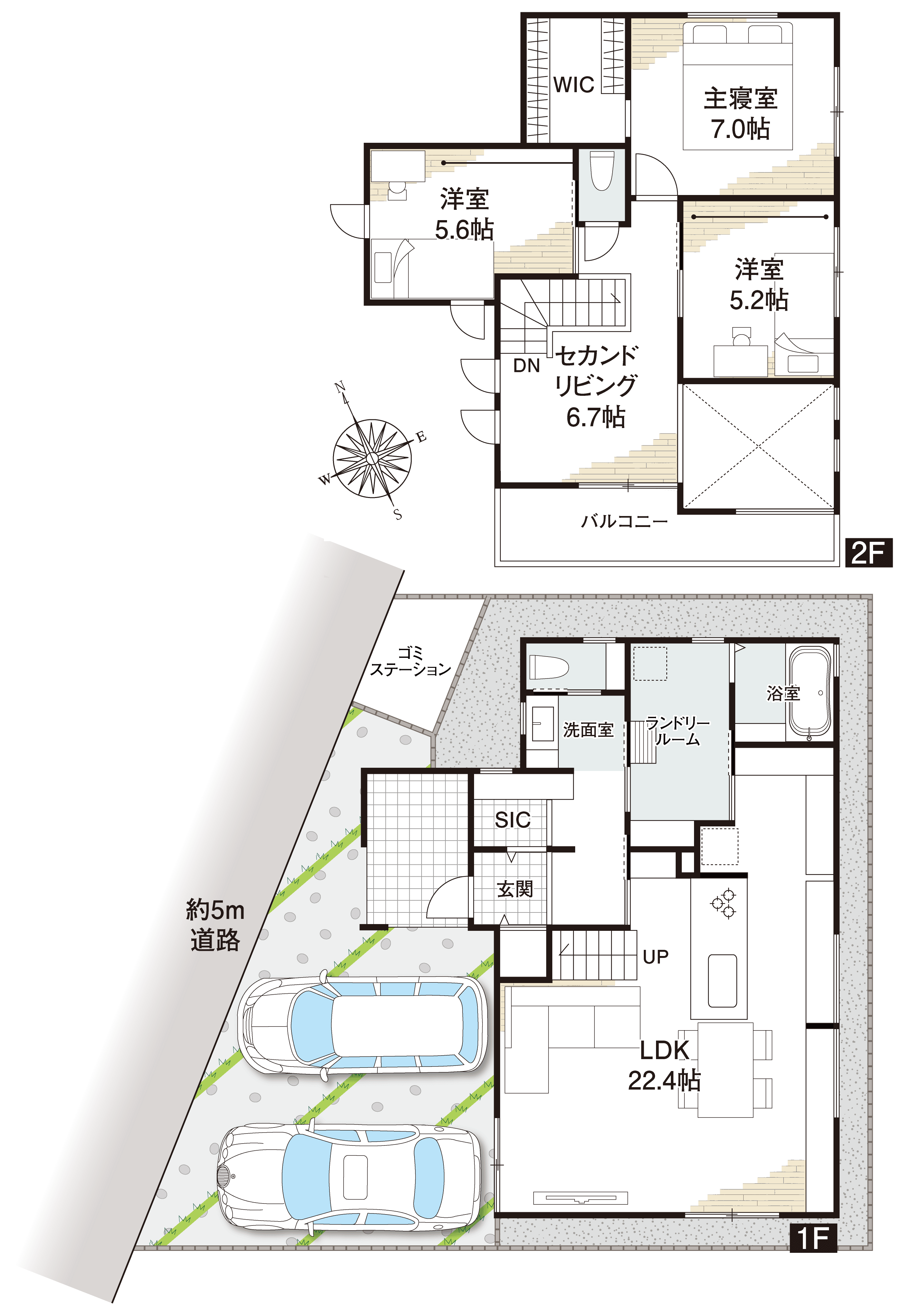 1F:57.13㎡ 2F:49.47㎡新築5,130